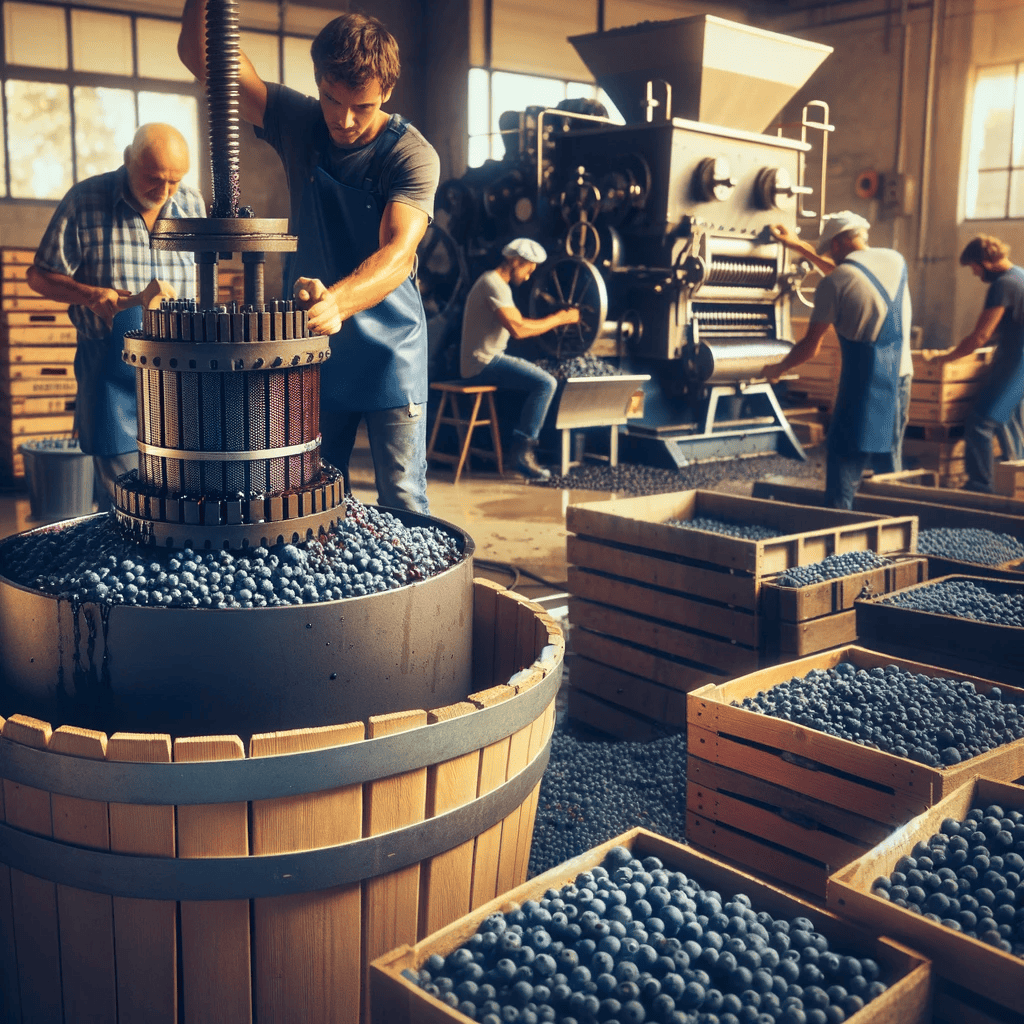 Po zbiorach jagody są dokładnie sortowane i poddawane procesowi rozdrabniania, podczas którego jagody są delikatnie wyciskane, aby uwolnić sok. Wyciśnięte owoce umieszczane są w zbiornikach fermentacyjnych. Dodaje się drożdże, aby rozpocząć fermentację wstępną, podczas której drożdże przekształcają naturalne cukry w jagodach na alkohol. Ten etap jest ściśle monitorowany pod kątem temperatury i poziomu cukru, aby kontrolować proces fermentacji i rozwijać pożądane cechy wina.